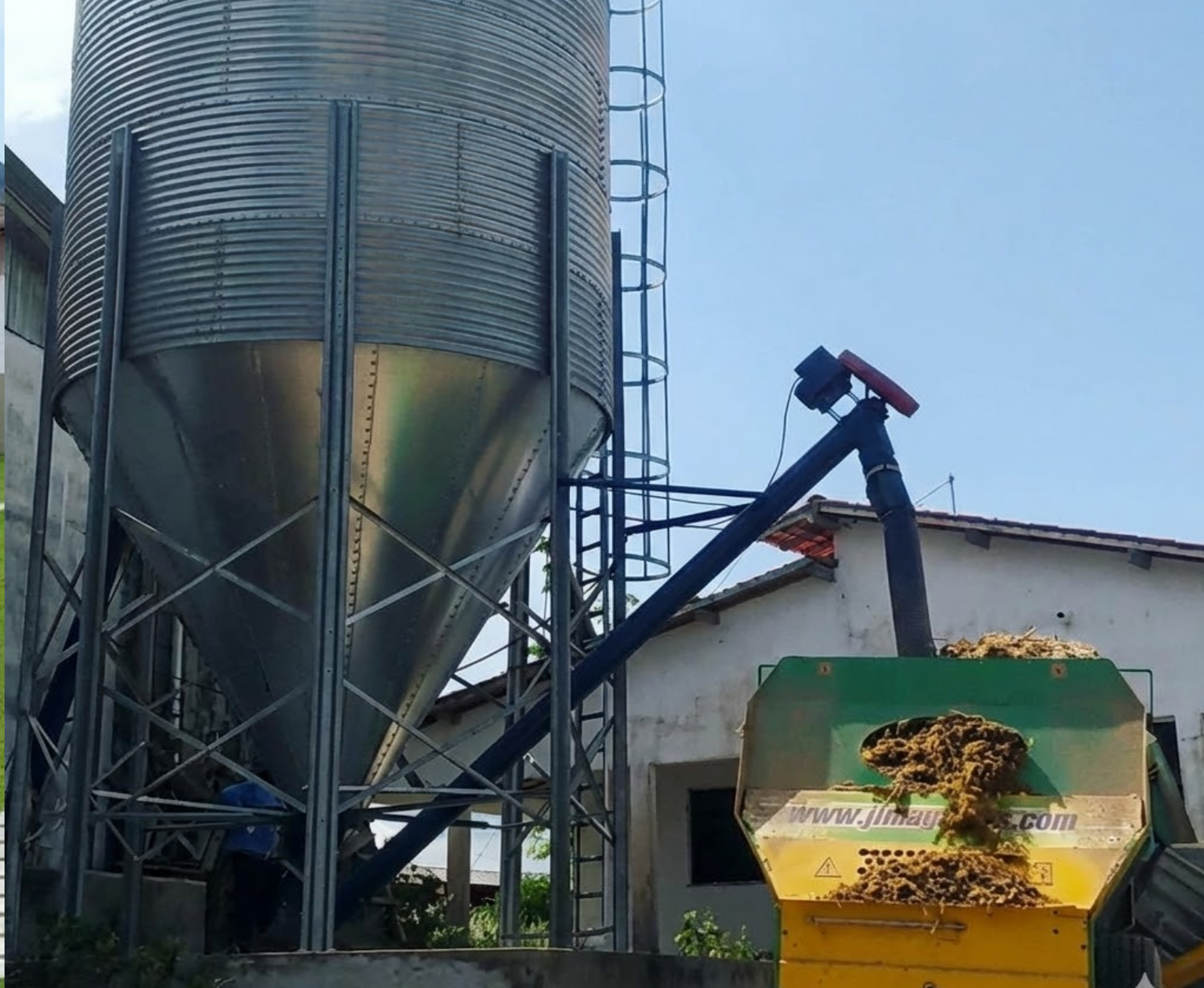 Fábrica de Ração: Possui fábrica completa com silo vertical metálico externo e sistema de mistura, garantindo autonomia nutricional.
