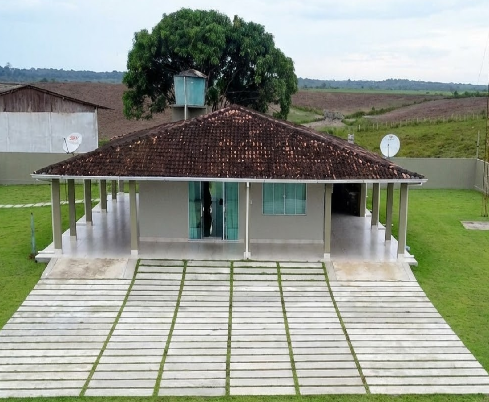 Água: Poço artesiano, reservatório central de 500.000 litros com distribuição, além de rios e igarapés naturais.