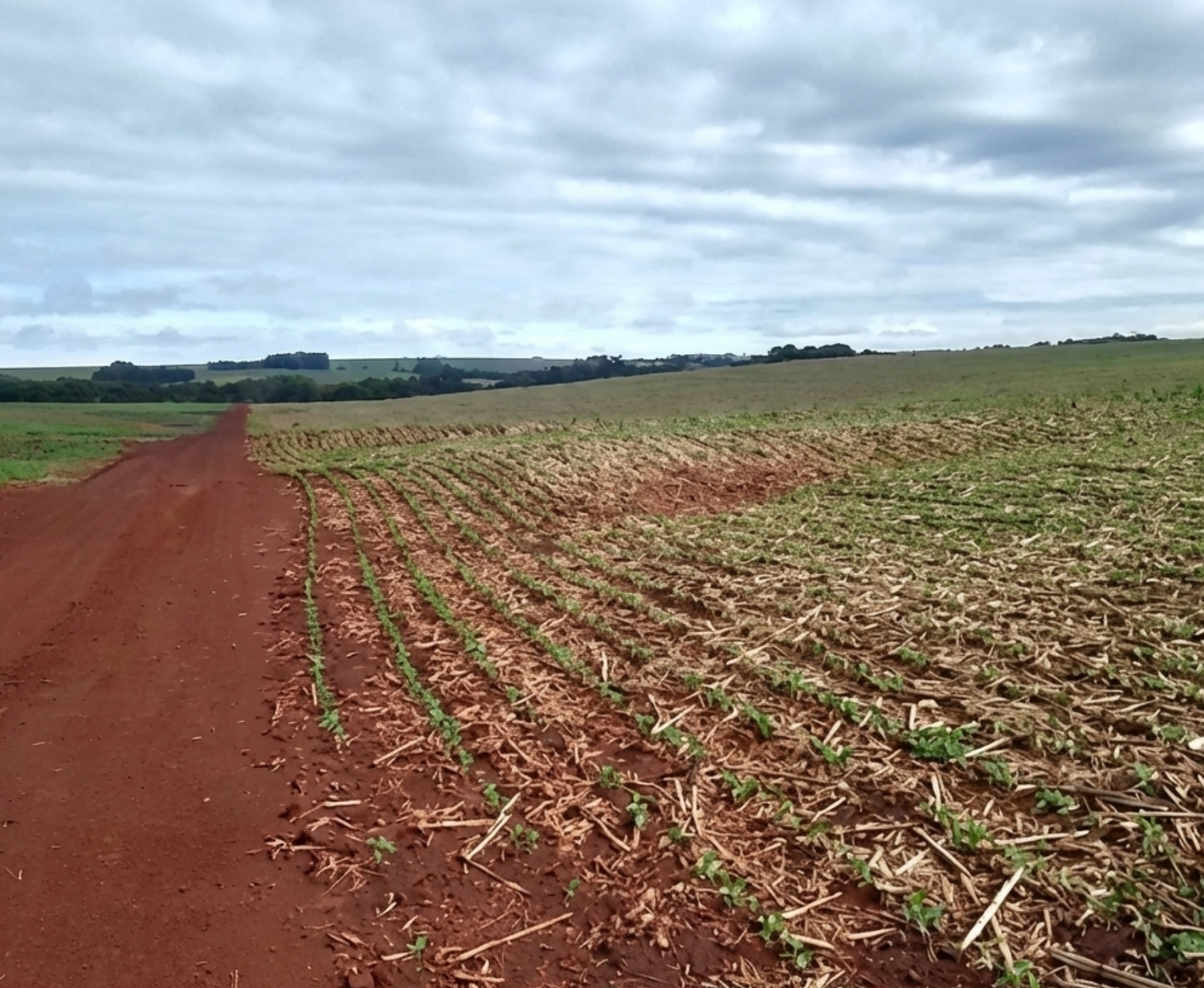 Área de Plantio (Grãos): 79 Alqueires (191 Hectares). As imagens mostram lavouras colhidas com excelente cobertura de palhada, indicando sistema de Plantio Direto consolidado, essencial para manutenção da umidade e matéria orgânica.