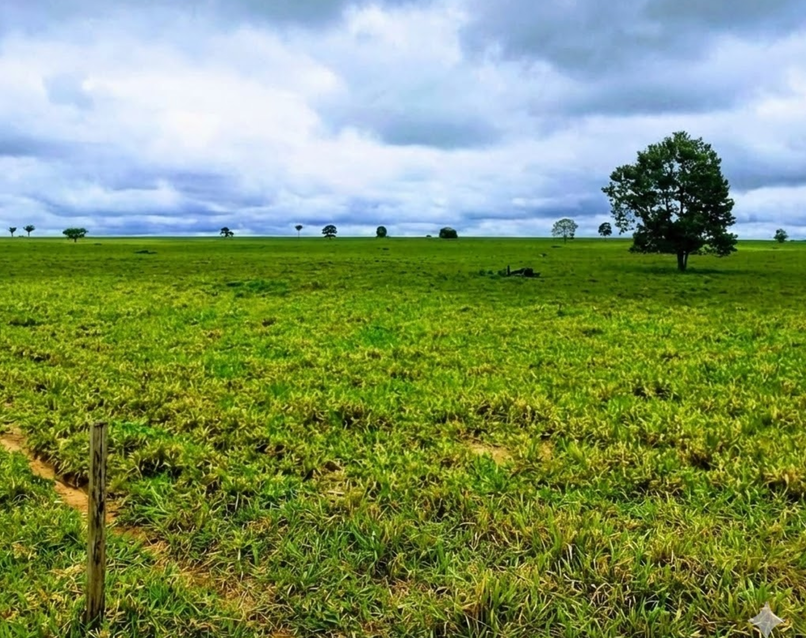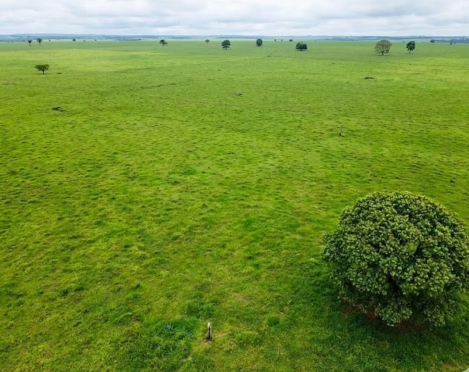 Topografia: Visualmente e tecnicamente 80% Plana, conforme demonstrado na imagem panorâmica da pastagem, que revela um horizonte reto e sem impedimentos.
