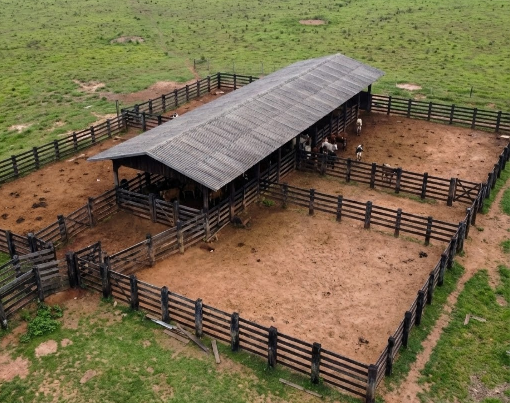 Manejo Pecuário: Possui Curral completo coberto, construído em madeira de lei, com tronco e balança, funcional para manejo de cria, recria e engorda.