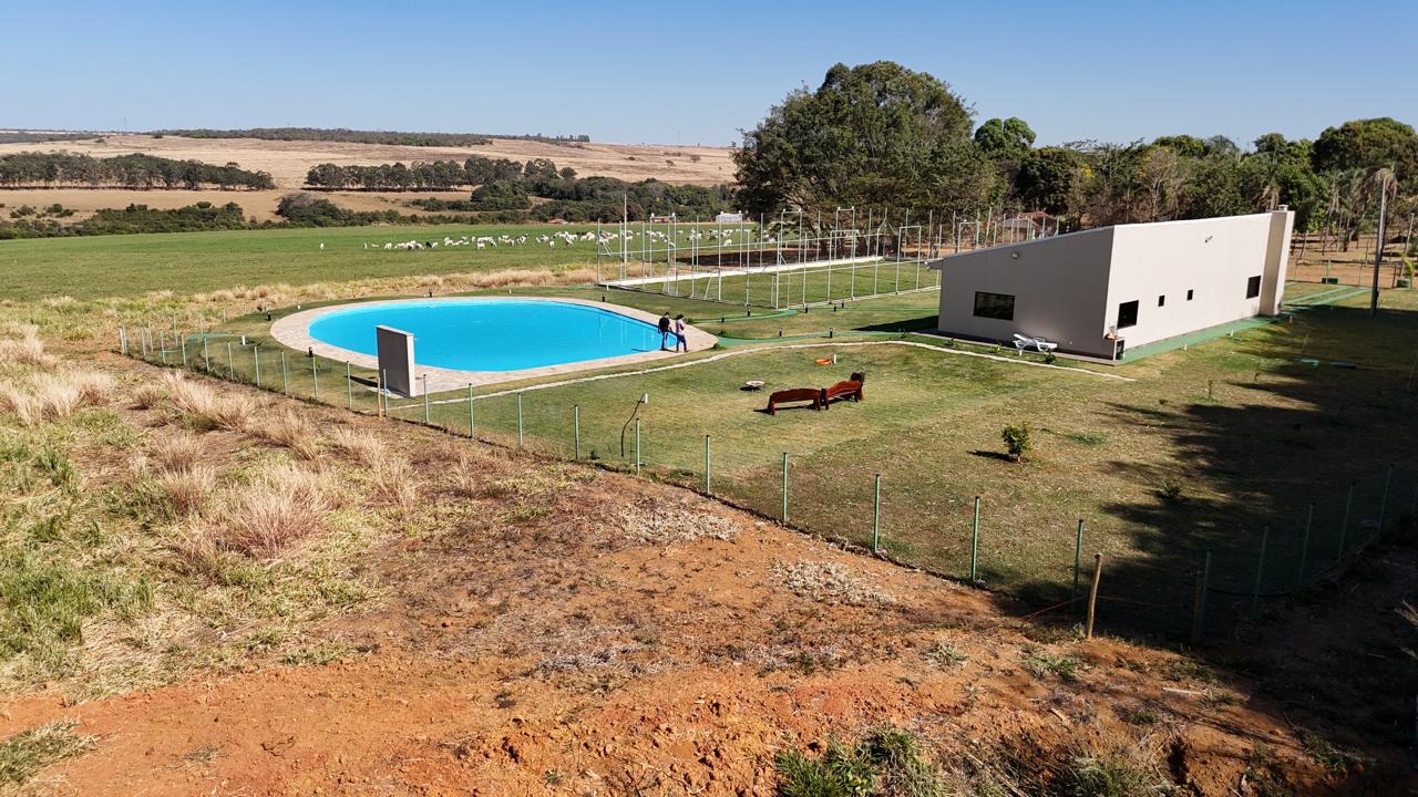 • Infraestrutura Civil e Logística: O complexo operacional conta com galpão logístico (capacidade visual estimada em 400 m²), além de malha de apoio pecuário (área de ordenha, pocilga, baias). A base habitacional e de suporte oferece sede principal estruturada, 02 edificações de apoio, quiosque gourmet, área esportiva e piscina dimensionada (estimativa visual de 400 m²). Conectividade de internet via satélite e sistema de monitoramento relatados como ativos.